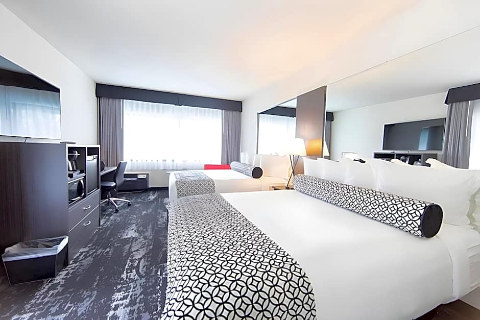 Newly updated room with poolside access from the room features custom-made Davenport pillow top Queen beds dressed in fine Frette linens, large marble shower, 55″ high-definition flat-screen TV, Executive desk, access to fitness center, outside pool (seasonal), wireless internet access, luxurious bath and personal care products from L’Occitane, microwave, refrigerator, alarm clock/radio, iron with board, hairdryer and Keurig coffee maker / tea service.